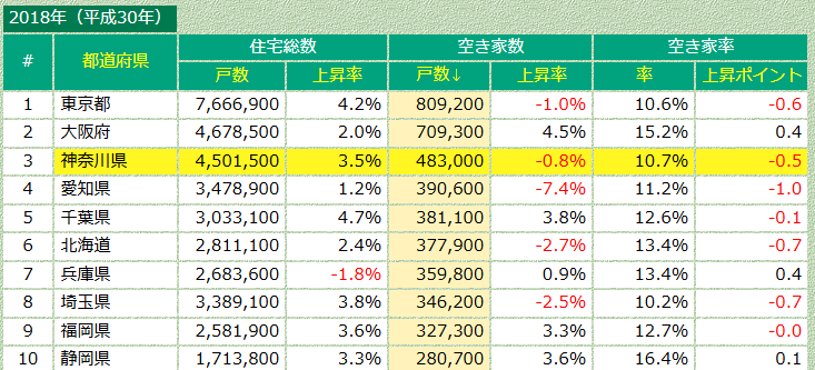 | 神奈川 | 483,000戸 | 10.7% |
