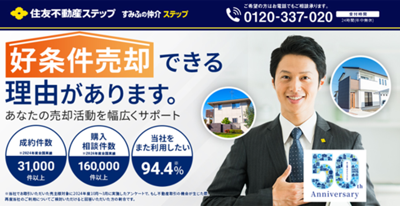 住友不動産(すまいの仲介ステップ)は、全国対応の不動産売却サービスです。