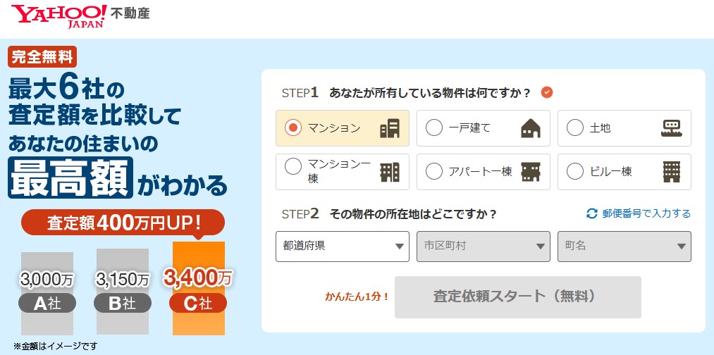 ヤフー不動産は、複数の不動産会社から一括査定ができるサービスです。