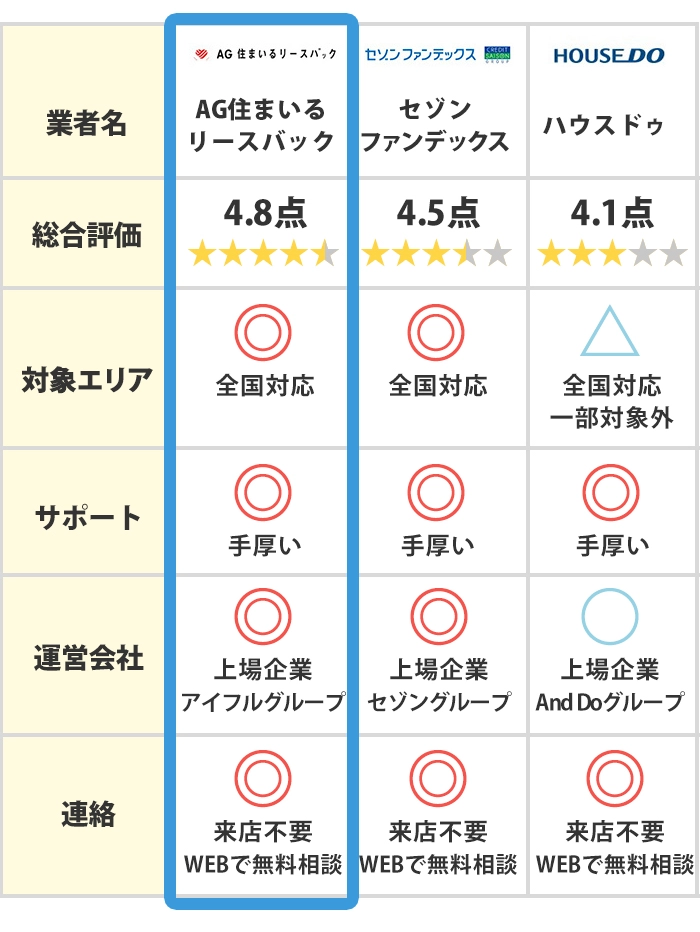 リースバック業者であれば、どこでもいいわけではない?!