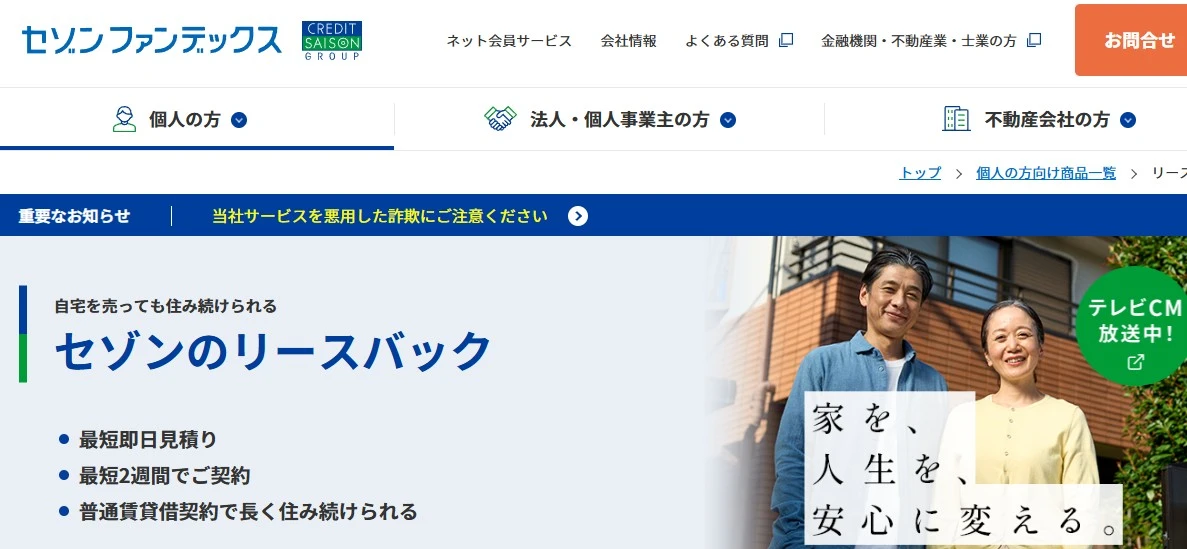 セゾンファンデックスは、金融大手セゾングループのリースバック業者です。